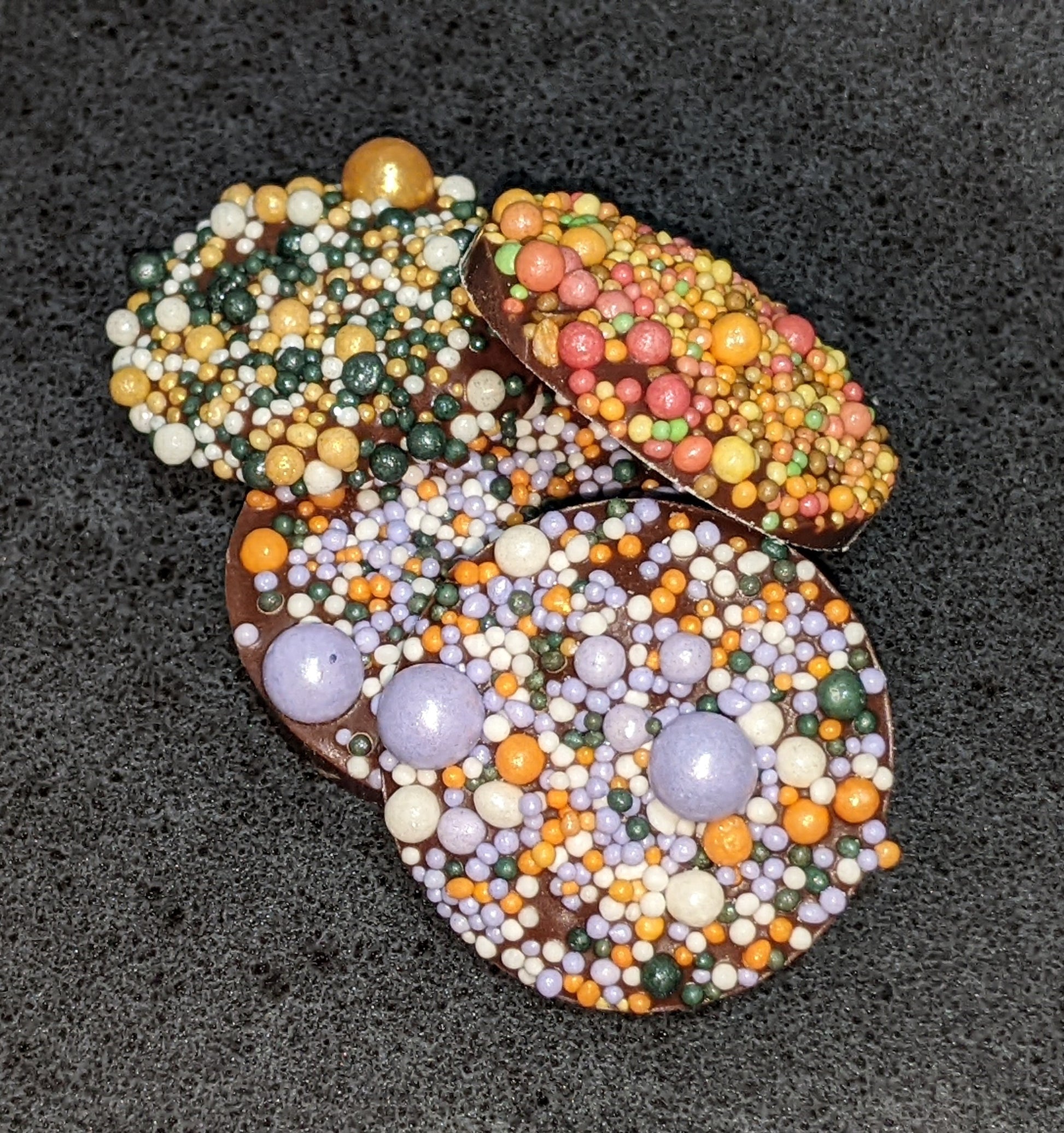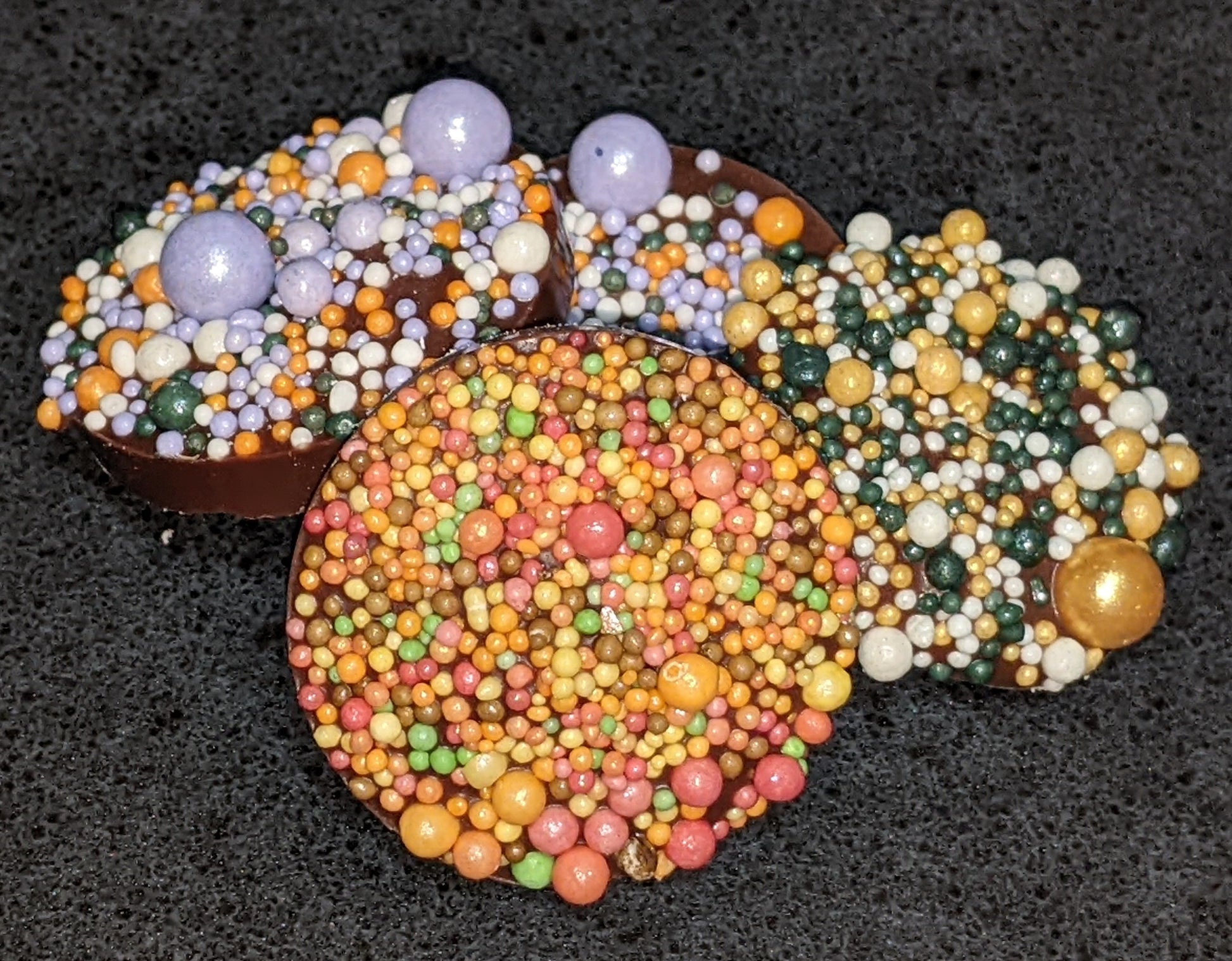Mountain Tops are a classic nonpareil reimagined for a Modern Appalachian Kitchen. This milk chocolate treat is loaded with nonpareils sprinkles from River Road Sprinkle Co for a unique, indulgent experience.